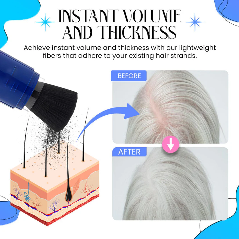 Supersize Color Fibers instantly cover bald spots, thinning, and patchiness across your temples, part, crown, and sides.