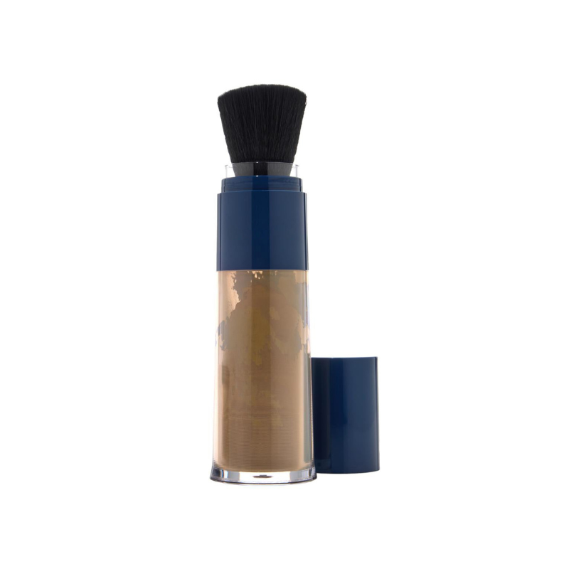 - Use the brush to blend the powder in your hair by rotating in a circular motion. Continue to dab and rotate until the desired amount of coverage is achieved.