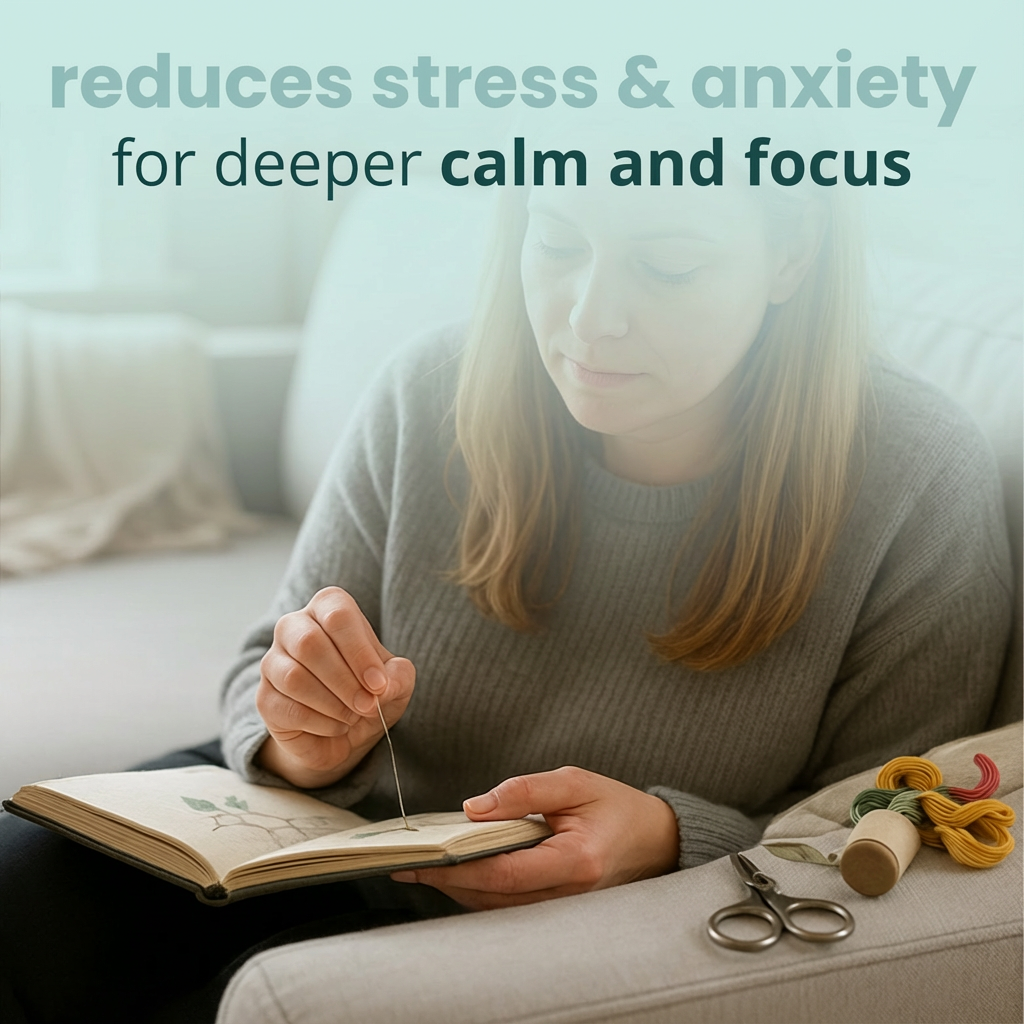 Yes — the book comes with thread, needles, scissors, and essentials, so you can start stitching the moment it arrives.