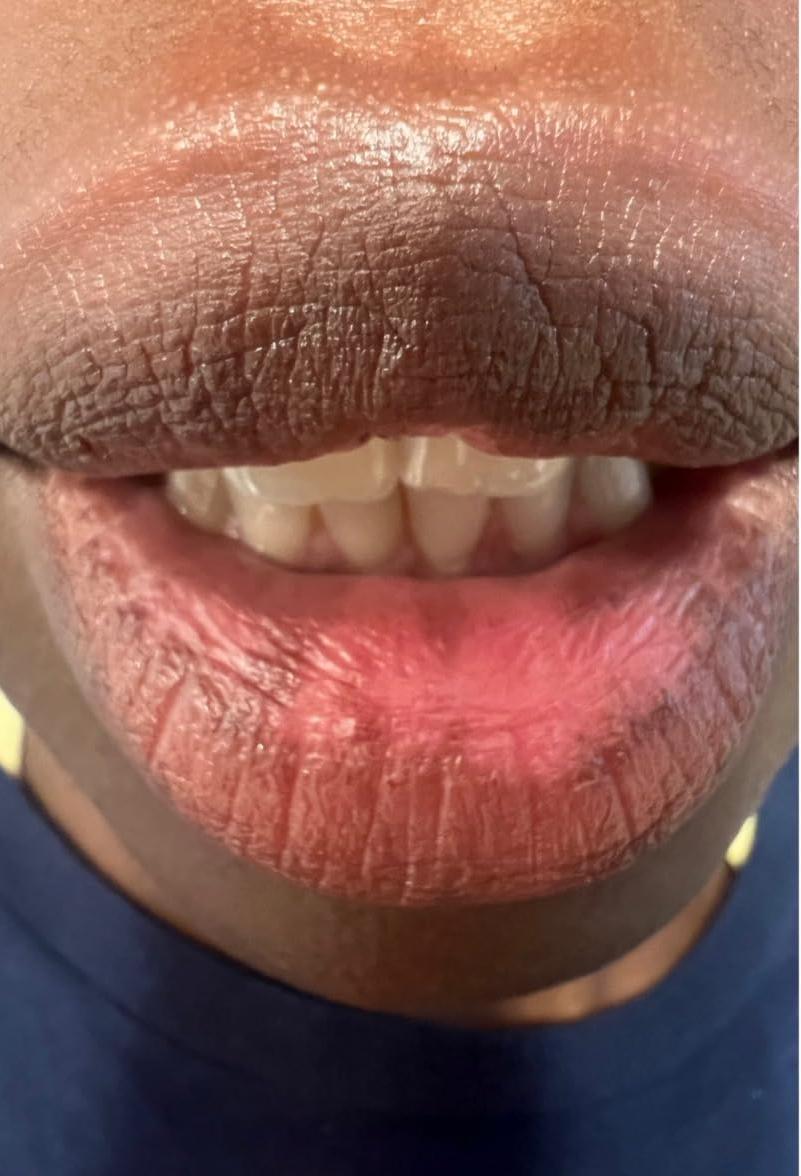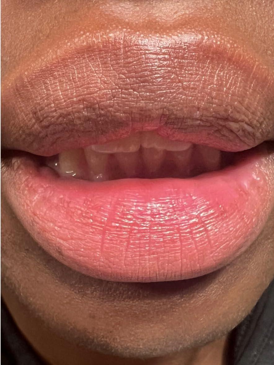 Improvement in lip color evenness, with noticeable reduction in dark spots.