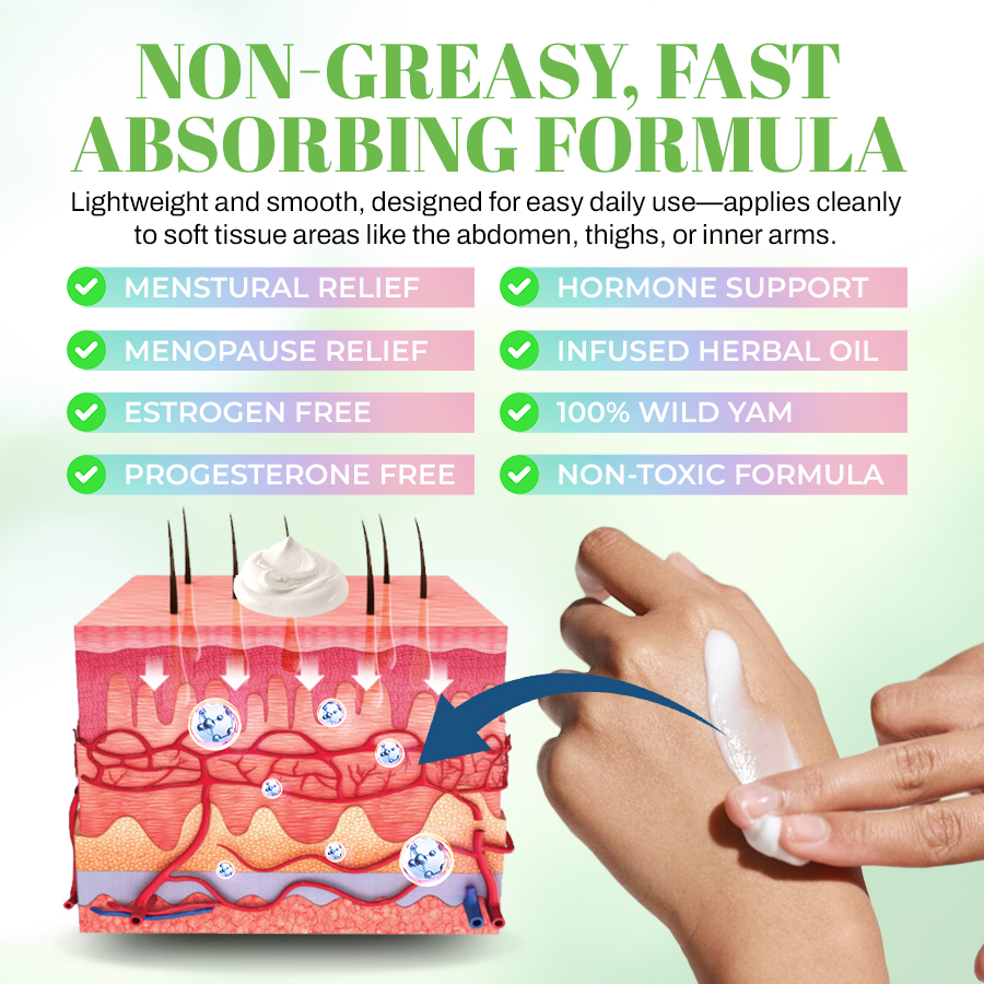 From adolescent hormonal shifts to midlife transitions, Wild Yam Cream is designed to meet the needs of women at every age. It may help reduce the intensity and frequency of hot flashes, night sweats, irritability, and brain fog. For younger women, it may ease PMS-related discomfort and irregular cycles. For all users, it offers a safe, plant-based way to support energy, mood, and hormonal wellbeing—without side effects or dependency.