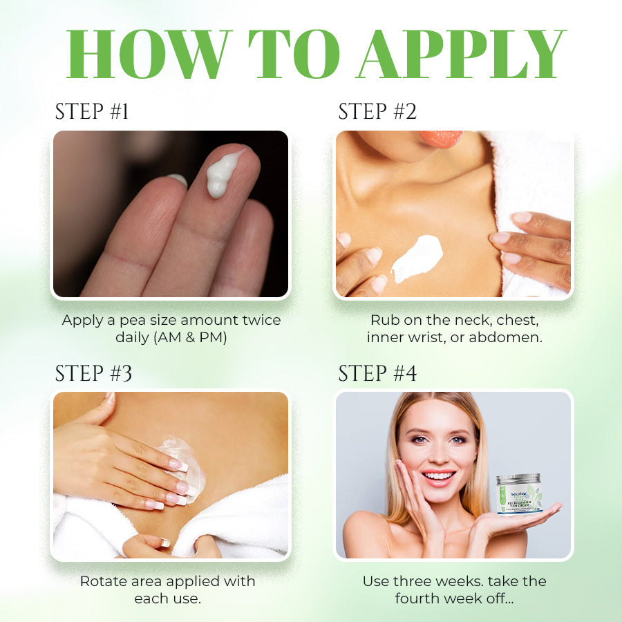 Application is intuitive and restorative: simply massage a pea-sized amount onto your inner wrist, lower abdomen, chest, or neck—twice daily. This gentle practice becomes a grounding ritual, giving your body a consistent cue for calm. Women follow a three-weeks-on, one-week-off rhythm aligned with their cycle or symptoms. Men apply once daily, no break required. This structure honors the body’s natural flow, rather than overriding it.